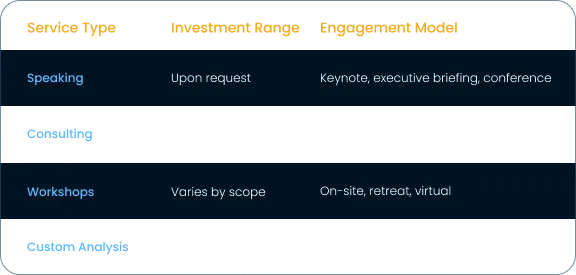 Intelligence reports combined with workshops and consulting for strategic capability building.